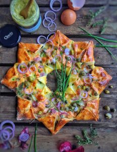 Badigeonnez au pinceau les pointes de l’étoile avec du jaune d’œuf.